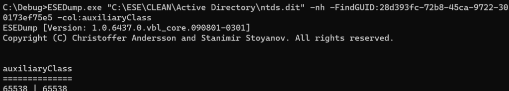 We are and it works as expected on down-level DC (e.g. not Windows Server 2025) – We get a DSID – that can give us a pointer to where this is blocked in the ds source. I happen to know that AD has it’s own detection for duplicates values for certain syntaxes, but not for 2.5.5.2 aka String(Object-Identifier) – here Active Directory solidly relays on Extensible Storage Engine – ESENT / Jet for value duplication detection.