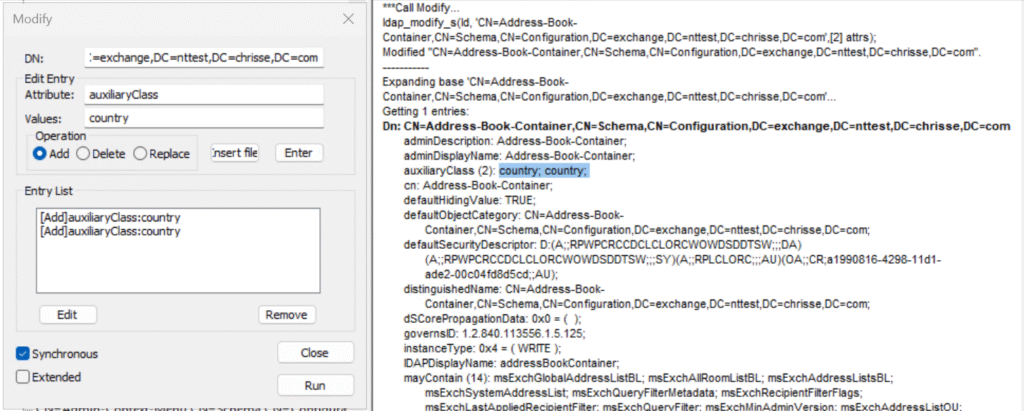 That is not good – and it will break Active Directory replication on the receiving end if it’s a down-level DC (e.g. not Windows Server 2025 [2]) the update will only apply one of the duplicate e.g. the duplicate detection will work, so if we’re looking up our example class here ‘Address-Book-Container’ between the schema FSMO and another DC.